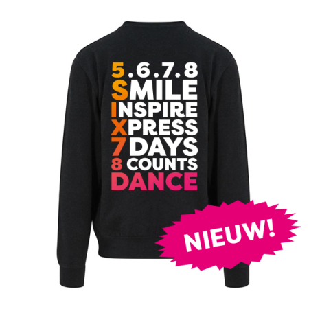 • Zwarte hoodie met confetti glitter & neon roze logo