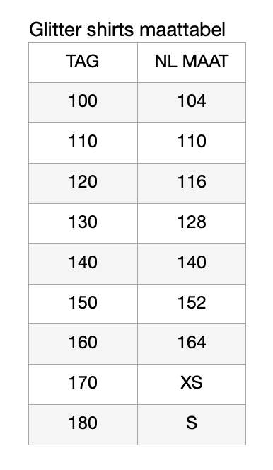 Er zijn ook tussen maten voor deze shirts.